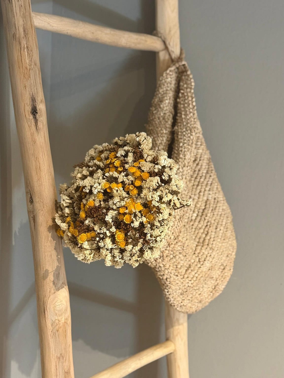 El Ramo Rústico ilumina con su sencillez y calidez. Una combinación de flores secas en tonos blancos y amarillos mostaza que evocan la serenidad de la naturaleza. Su estética rústica lo convierte en la opción perfecta para dar vida a espacios acogedores, decorar ambientes mediterráneos o acompañar momentos especiales con un toque natural.